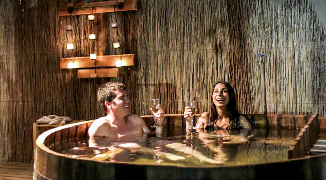 Nuestro sauna es uno de los espacios más apreciados por los huéspedes: un refugio cálido y silencioso donde el cuerpo se relaja y la mente se renueva después de un día de aventuras o trabajo. Junto a él, la piscina al aire libre, rodeada de flores y naturaleza, invita a disfrutar del sol del desierto con total serenidad.